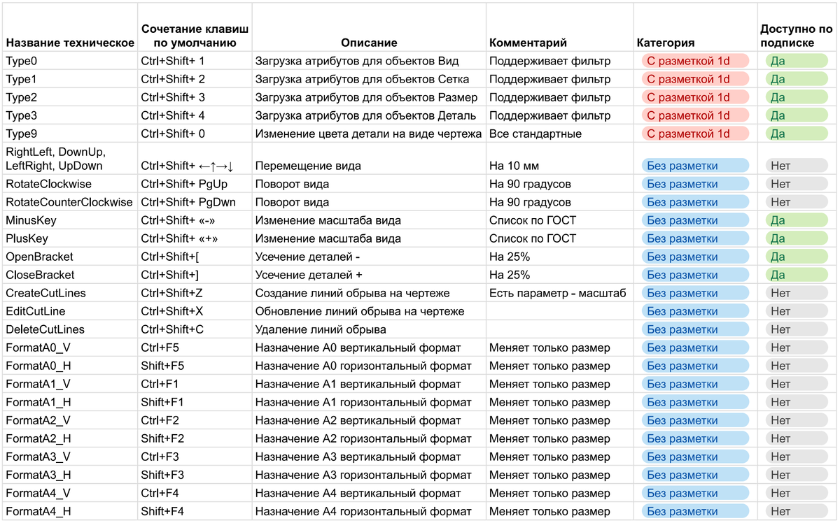 Ctrl/Shift+F1…F4 – установить формат чертежа А1…А4. Ориентация книжная/альбомная.